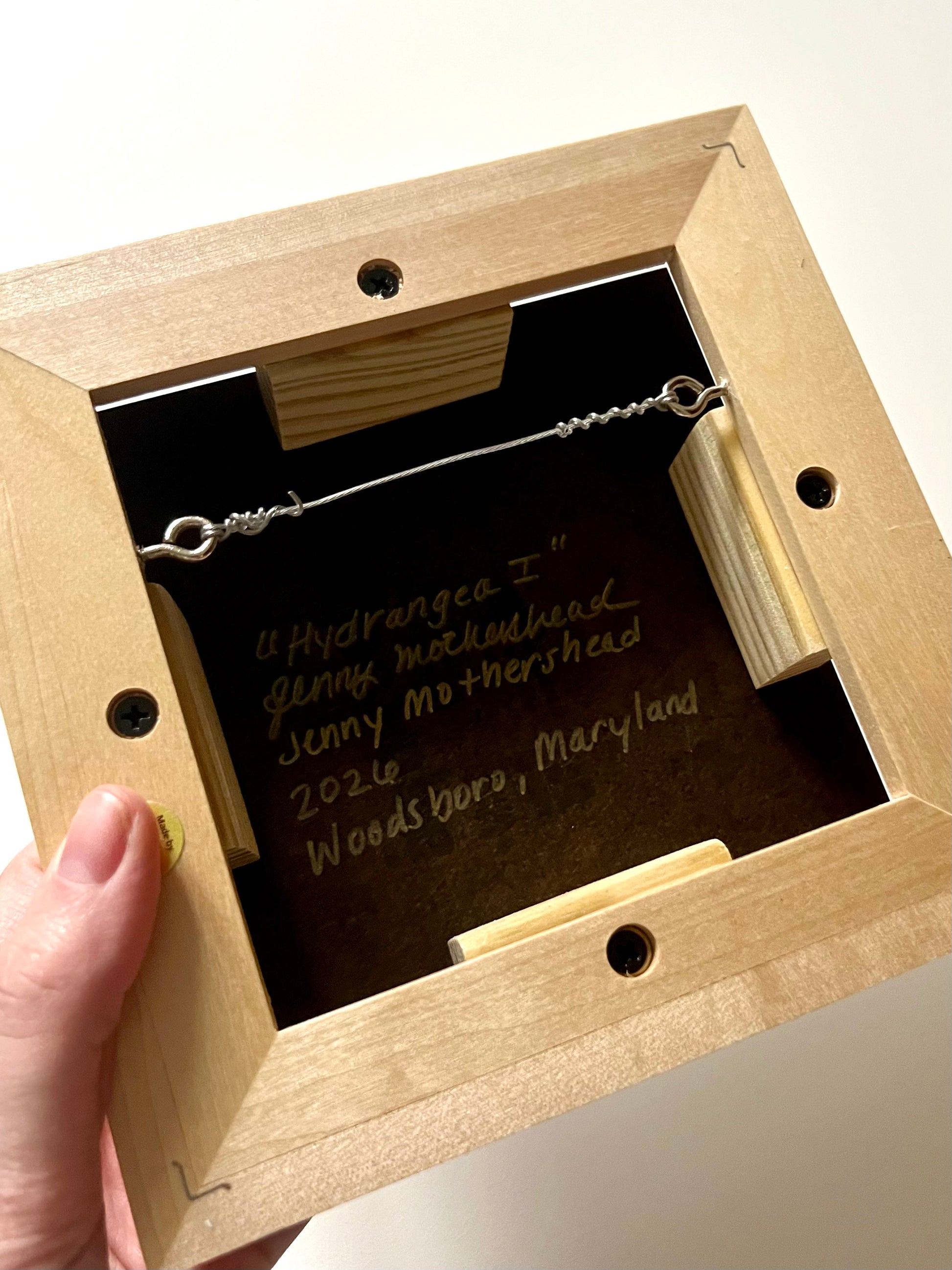 Set in a deep, warm maple frame, this piece is ready to display and designed to feel right at home on a shelf, desk, nightstand, or gallery wall.