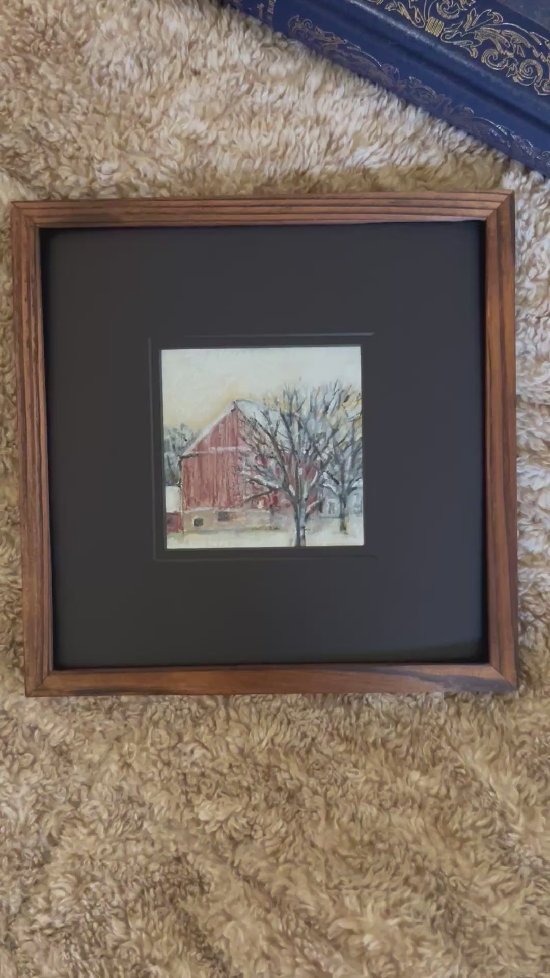 Framed in a warm wood frame with a striking black mat, this piece adds a cozy, timeless touch to any corner of your home. Its small size makes it perfect for styling on shelves, layering on a gallery wall, or gifting to someone who loves rustic winter charm.